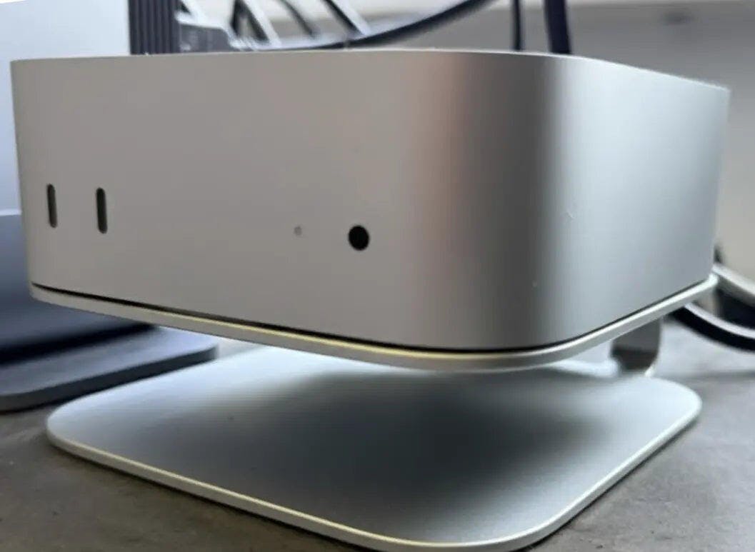 Geen krassen of wegglijden – een stevige aluminium standaard voor optimaal gebruik van jouw Mac Mini M4, met extra bescherming.